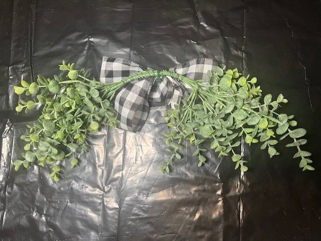 6. Wrap both the greenery bushes together using wire. I bent both of the greenery bushes down a little prior to adding the bow in step 8.